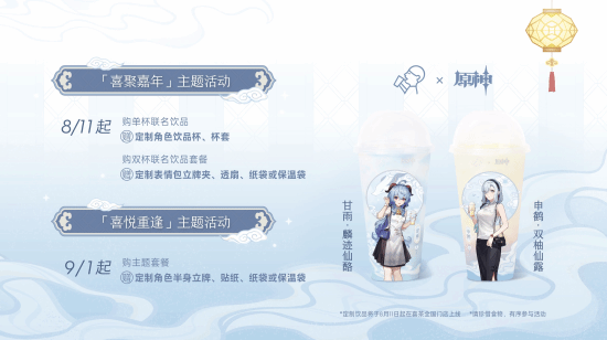 8月11日,喜茶×申远联名饮品“甘雨林佶卢希安”和“神和双友卢希安”在喜茶全国门店首发,联动主题店也正式亮相17个城市。