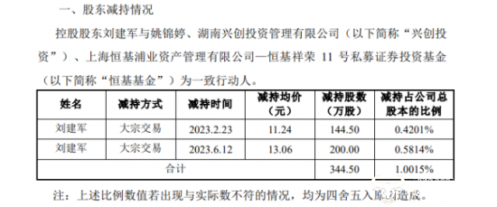 值得注意的是,近期公司副总经理吴拟减持公司股份不超过18,750股。今年上半年,刘建军还通过大宗交易两次减持公司股份,分别是以11.24元的均价减持144.5万股,以13.06元的均价减持200万股,累计套现金额4236.18万元。