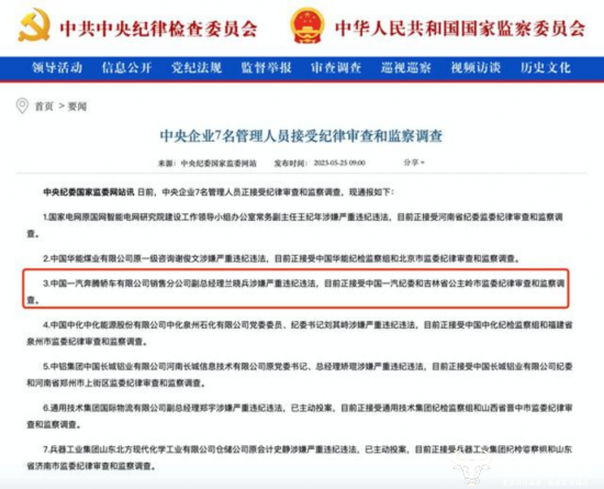 今年5月,根据官方消息,一汽奔腾轿车有限公司销售分公司副总经理蓝涉嫌严重违纪违法,正接受组织调查。