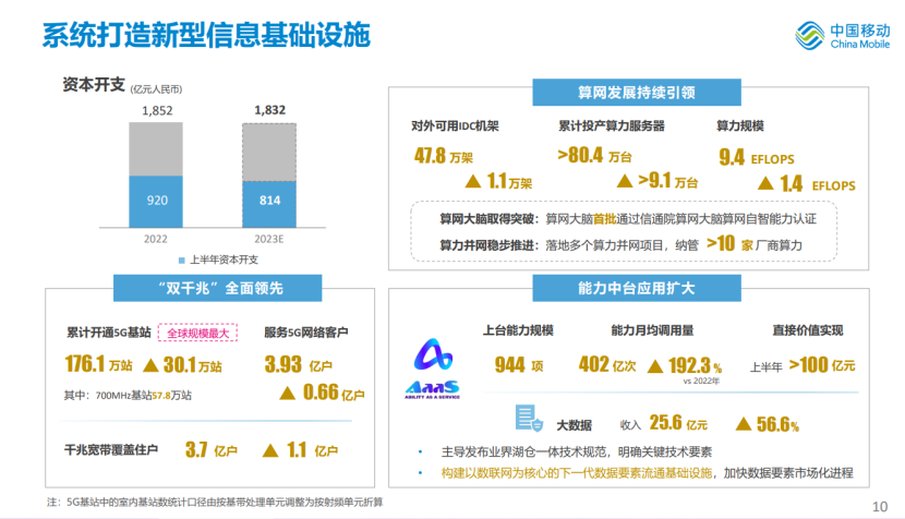 8月10日,中国移动正式发布2023年半年报。DVBCN注意到,中国移动还介绍了与中国广电共建共享的700MHz网络建设的最新进展。