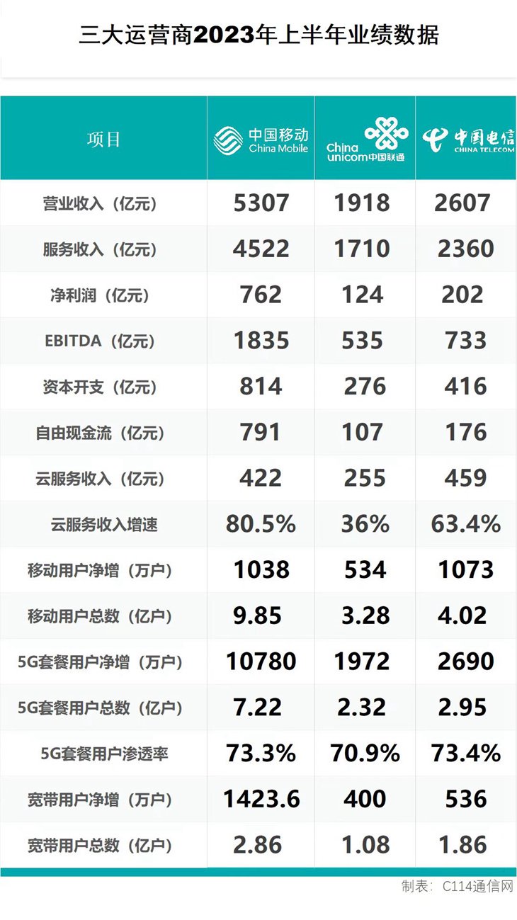 C114新闻8月11日消息(99)2023年上半年,宏观需求不足,外部环境复杂严峻。面对诸多困难和挑战,三大运营商经营业绩实现全面增长。