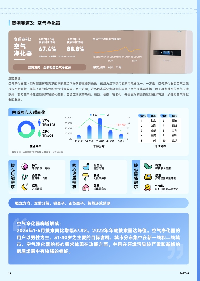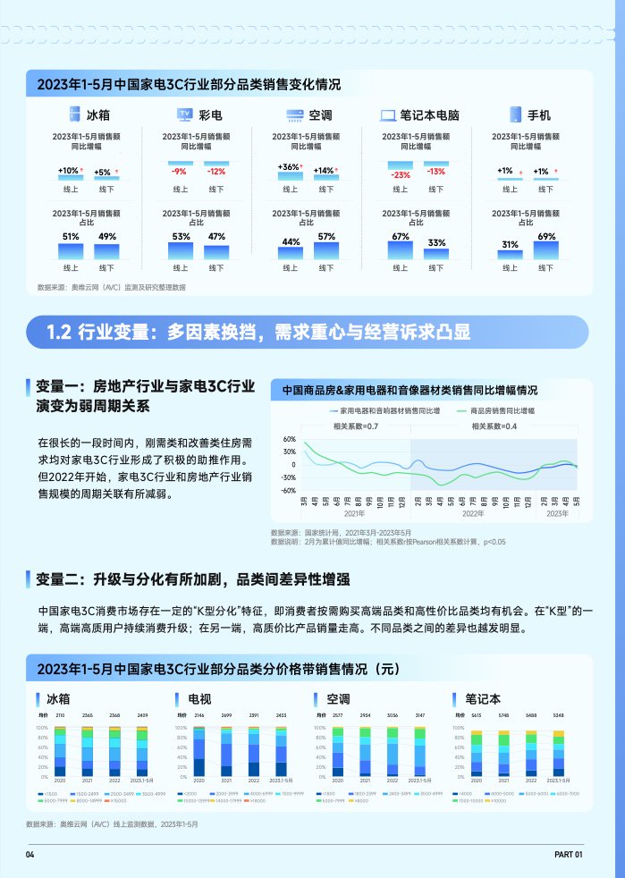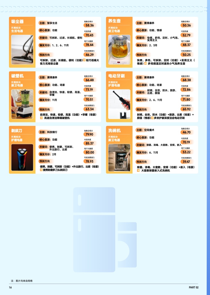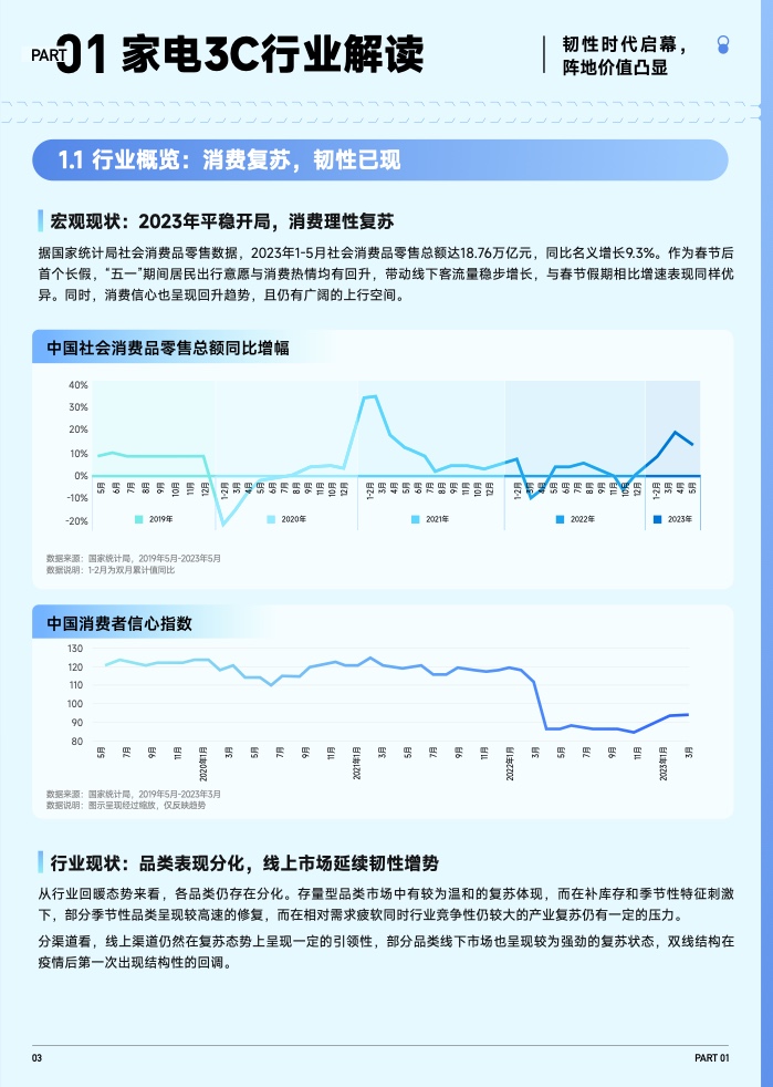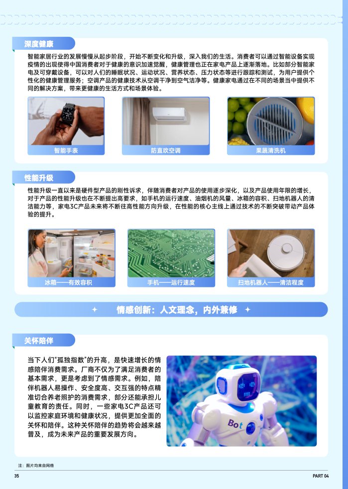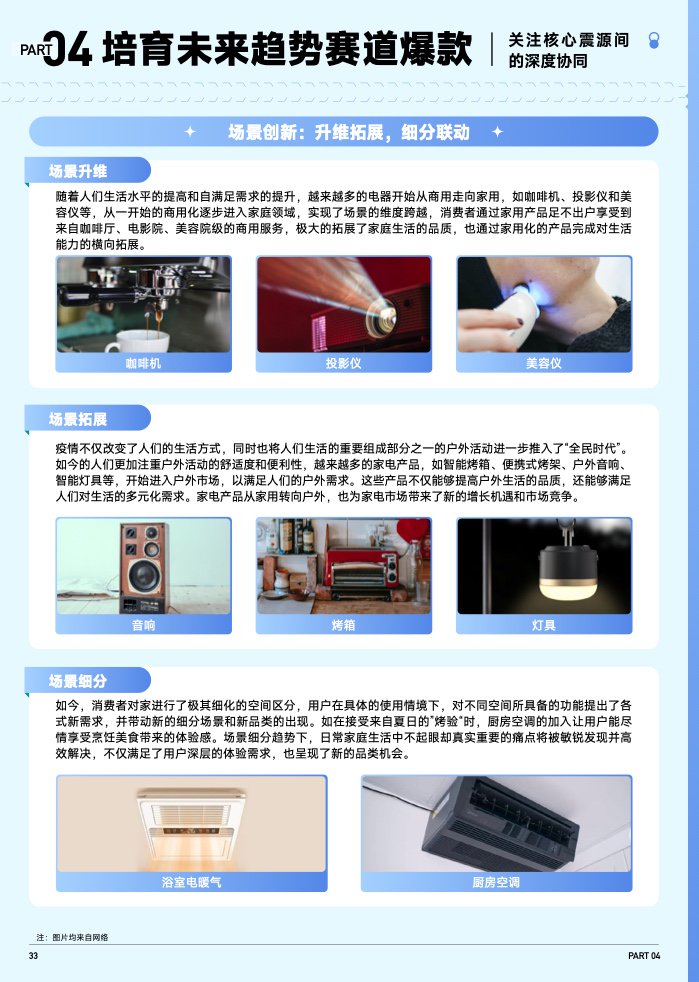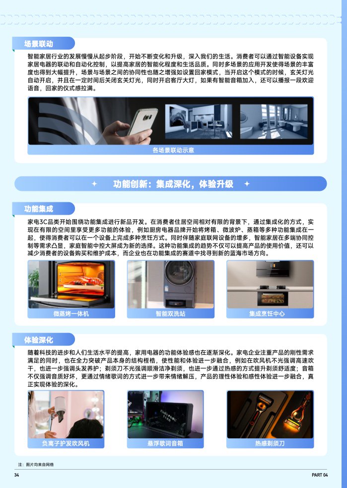 回顾3C家电产业的发展,产品创新一直是推动其发展的关键因素之一。当前形势下,我们看到创新体验、多维健康、深度智能等领域的新产品不断涌现,细分市场渗透速度不断加快。同时,品牌管理也更加注重多元化的趋势和内容的有效传播,场协同管理成为品牌成功的核心。此外,需求端的细分和细化也使得品质提升的需求和新的细分场景不断涌现。