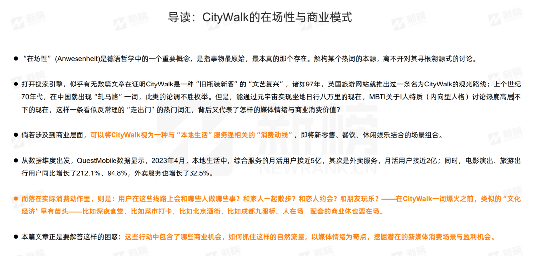 近日,新榜单发布了《Citywalk本地生活商业价值洞察报告》,主要内容如下: