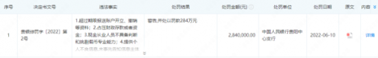 值得一提的是,去年6月10日,贵州银行因“超过时限;占用财政存款或者资金;现金从业人员不具备对假币的专业判断和鉴别能力等多项违法事实,被中国人民银行贵阳中心支行警告并罚款284万元。
