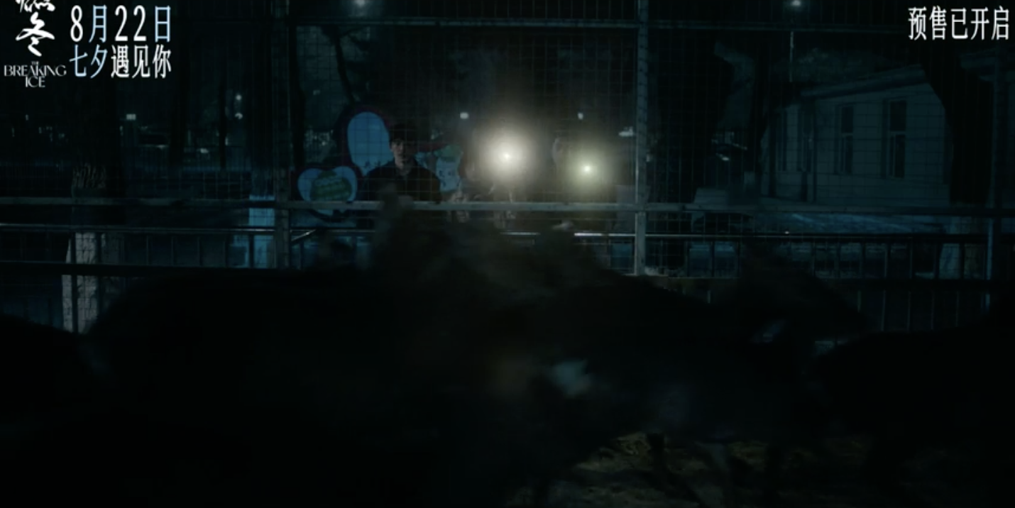 深夜,他们漫行至一个园区,透过铁笼瞭见里面有一群鹿。手机光照下,鹿逐光而行。鹿之后,镜头照向一群猴。猴子攀爬铁笼,登高远眺。
