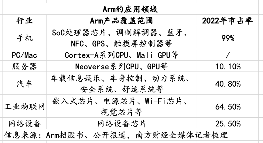 在招股书中,Arm还介绍了对细分市场的分析以及2022年实现的全球市场份额。通过这种分析,公众不难看出公司短期内的经营方向。
