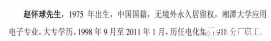 公司招股书显示,赵怀秋出生于1975年,按时间算已经48岁。大专学历,曾就读于湘潭大学应用电子专业。