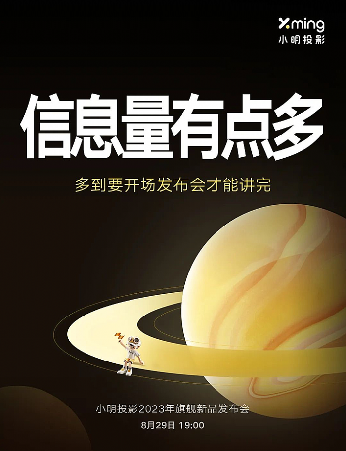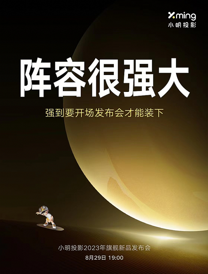 从8月16日开始,小明投影连续用三张海报公布了自己即将于8月29日召开新品发布会的消息。而且三张海报“根本没有透露具体的产品消息”。此事引起了业界和消费者的诸多猜测!