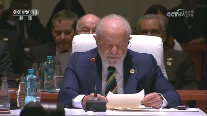 巴西总统卢拉在金砖国家领导人第十五次会晤上使用TAIDEN全数字会议系统发言。