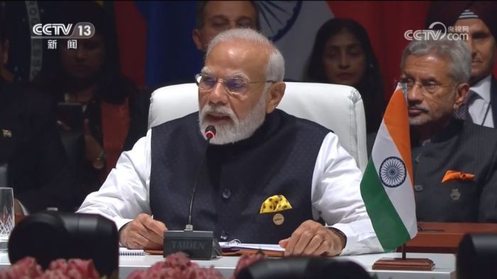 印度总理莫迪在金砖国家领导人第十五次会晤上使用TAIDEN全数字会议系统发言。