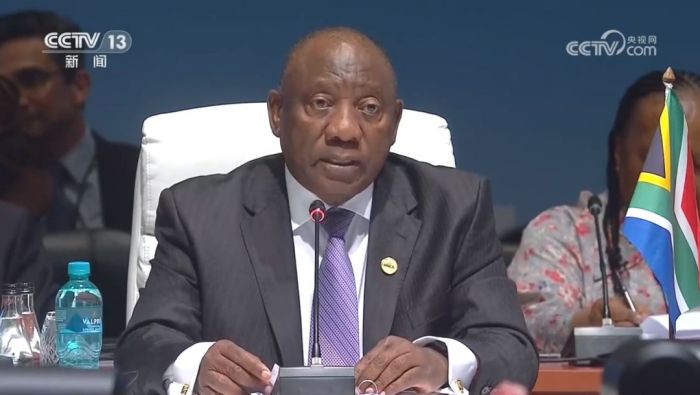南非总统拉马福萨在金砖国家领导人第十五次会晤上使用TAIDEN全数字会议系统发言。