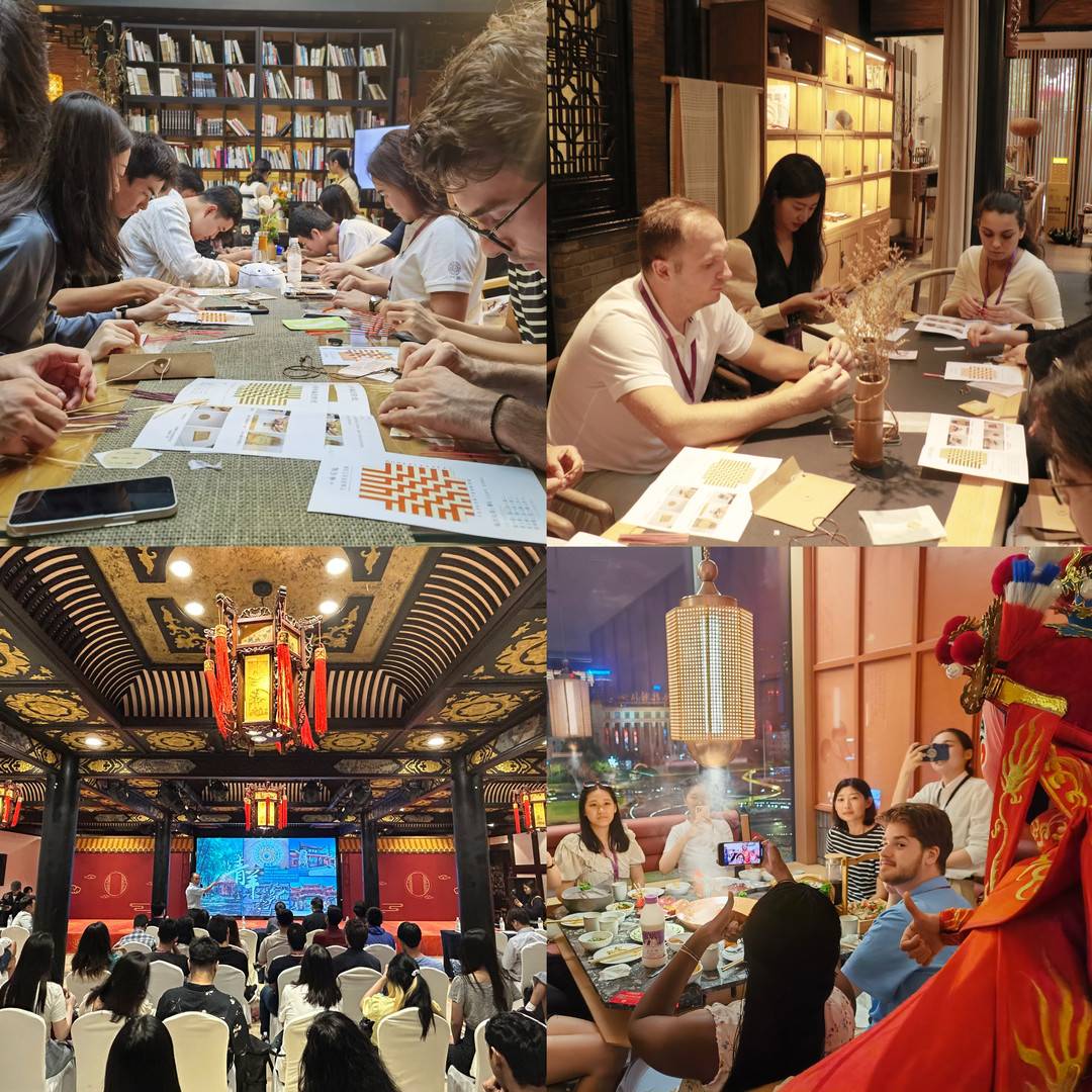 青年代表随后前往青羊区文殊坊街区,与青羊区主席、四川省非物质文化遗产保护协会理事、国家级非物质遗产代表性传承人孟进行了“对话与非物质遗产”的主题交流,体验了蜀绣、竹编等四川传统手工艺,亲身感受了四川传统文化的魅力和独特之处。体验天府广场特色清真火锅,欣赏川剧变脸等无形技艺。这一经历不仅加深了青年代表对成都文化的认知,也获得了中国在传统文化传承这一全球性问题上的经验。