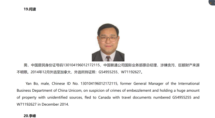 部分在逃人员线索公告发布至今已有5年。到目前为止,中国联通国际业务部原总经理闫波被列为在逃人员归案的消息,不知道他目前的情况如何?接下来我试着回顾一下闫波逃跑的背后隐藏了多少猫腻。