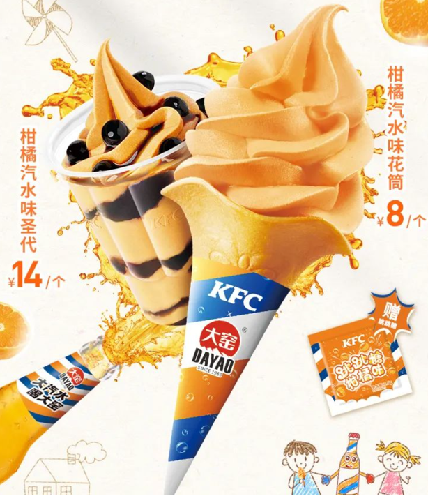 8月21日,“肯德基”官方宣布与大姚联合推出新品:柑橘苏打味圣代和柑橘苏打味花管。目前产品已在门店上架,其中柑橘苏打味圣代售价14元,柑橘苏打味花管售价8元。