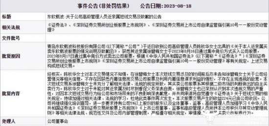 公告还提到,短线交易是徐碧梅的独立行为,陈秋华对此并不知情,并对短线交易造成的影响表示歉意。