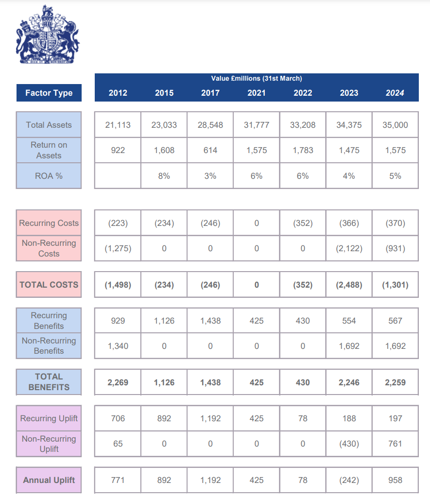 新的分析考虑了英国所有估计的成本和收益,并将它们分为经常性和非经常性影响。非经常性影响是与特殊事件(如查理三世国王加冕)相关的一次性成本和收益。