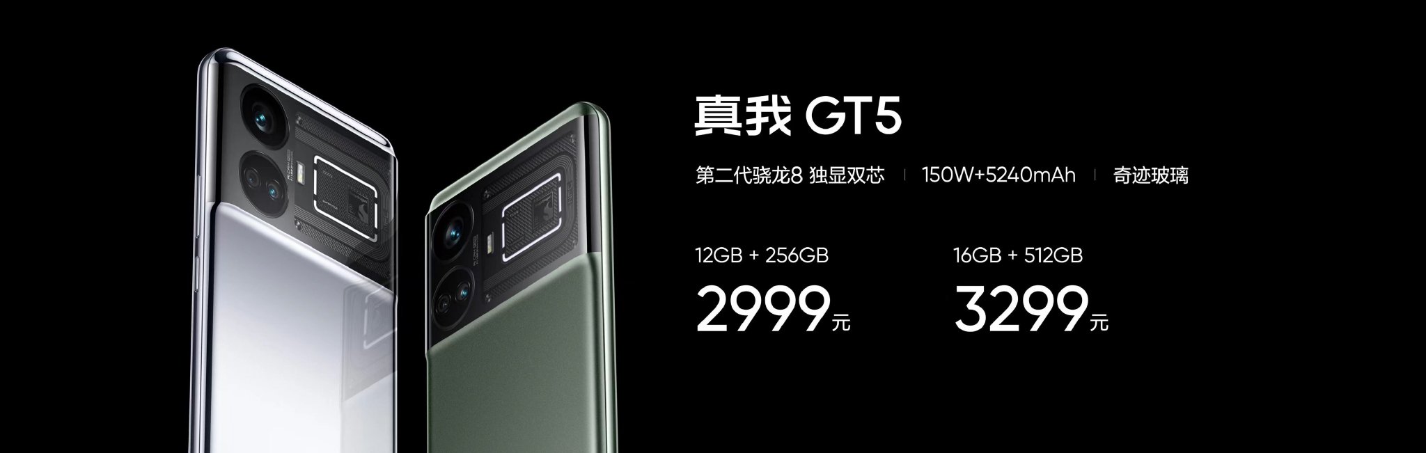 真我GT5 240W满量程二次充电版:24GB+1TB价格为3799元;真我GT5 150W光速秒充版:16GB+512GB售价3299元,12GB+256GB售价2999元。