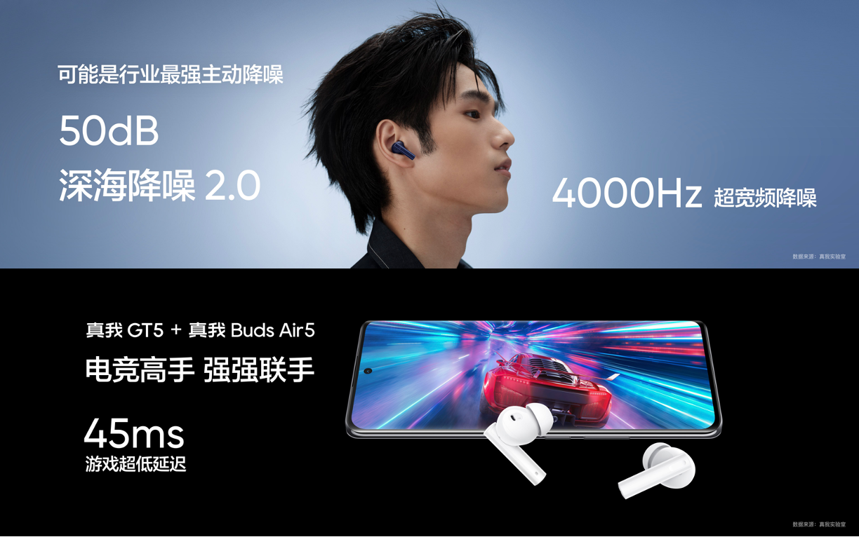 在这次发布会上,我还带来了两款降噪TWS新品。作为目前业内最强的主动降噪耳机,True Budds Air 5采用自主研发的深海降噪2.0技术,最高降噪深度可达50dB,超宽带降噪4000Hz,实现高达99.6%的有效背景降噪。同时搭载全新升级的六麦ai深度通话降噪,可大幅提升通话清晰度。