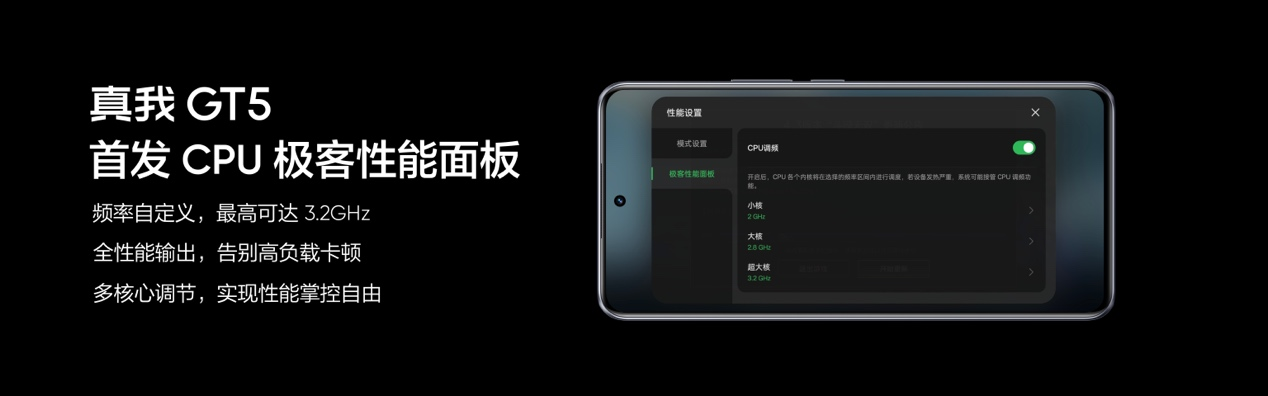 为了将性能释放到极致,I GT5推出了两项极客级性能黑科技:极客性能面板和燃烧模式。用户可以在游戏中调用极客性能面板来调整每个CPU核心的频率上限,大核心最高频率可以拉到3.2GHz,打破了传统的性能调整思路,让追求极致性能的玩家可以得到最完全性能释放的第二代骁龙8。刻录模式会适配主流蓝牙散热背夹。当用户接入蓝牙散热背夹时,真GT5会自动调度全频性能,为用户带来持续的高燃游戏体验。