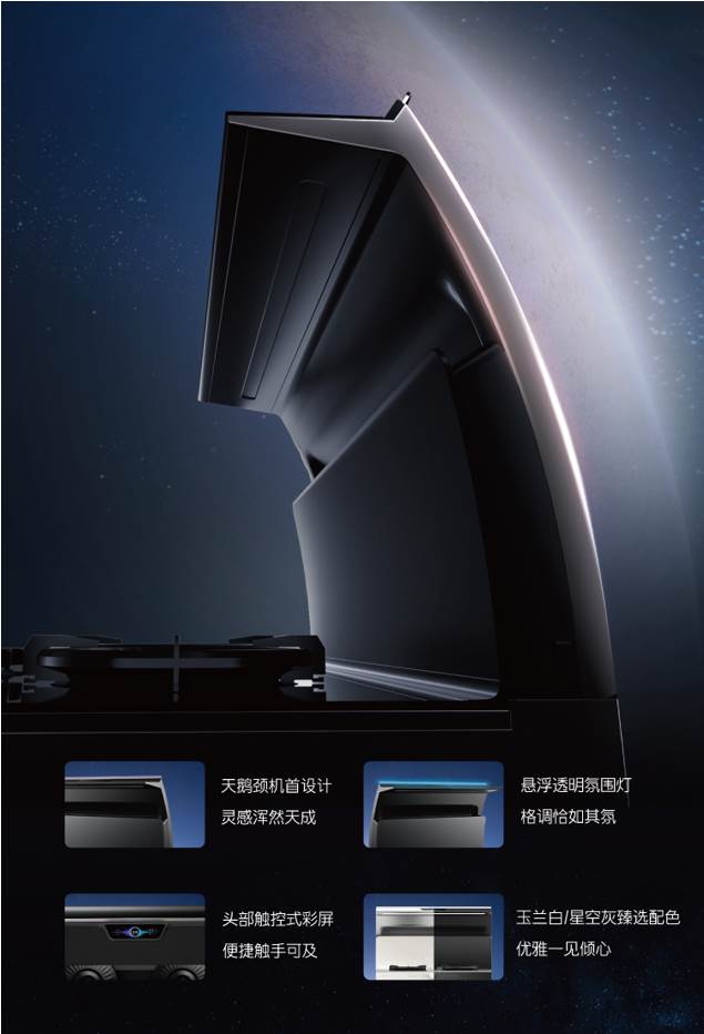 此外,X5 Pro创新性地采用了星云设计理念,头部的触控式彩屏和顶部的悬浮式氛围灯,仿佛将浩瀚星空引入烟火厨房,带来缤纷灵动之美。机身设计方面,X5 Pro采用全玻璃机身设计,区别于上一代产品的全黑机身,整体质感大幅提升。有玉兰白和星空灰两种配色可供选择,可以满足不同风格的厨房装修需求,让厨房实现“高价值、高品质、高质感”。