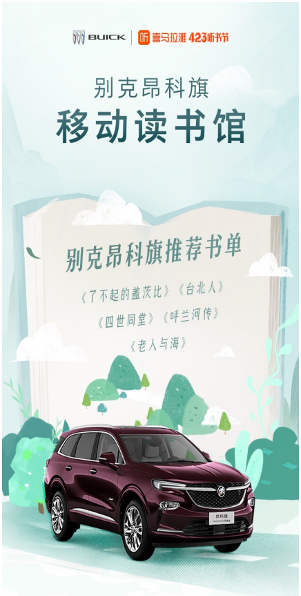 别克品牌总监郭跃分享了今年别克与喜马拉雅的重磅合作案例。今年喜马拉雅423读书节期间,别克昂科旗成为西马423读书节的“移动阅读官”,分别在网上和车上搭建了“移动阅读图书馆”。他们和喜马拉雅平台、梁文道一起,限时推荐了5本经典书籍供用户免费收听。梁文道在他的个人播客《八点》中对书单进行了深度解读,为阅读增加了更多层次。同时,结合梁文道的深度访谈和病毒视频,别克昂科旗掀起了全网听书的话题,让更多人感受到了阅读的力量,为喧嚣的现代生活带来了一片宁静的阅读空间。