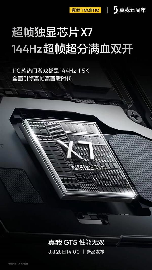 近年来,英雄联盟手游对年轻人有着深刻的洞察,在年轻人中有着巨大的影响力。我也一直坚持为用户普及144帧的电竞游戏体验,填补游戏画面的流畅性,打造超高帧手游体验的标杆。比如早在一年前,我就领先业界推出了首款超帧显示芯片X7,积累了更深刻的显示芯片调试经验。此次,I GT5再次搭载超帧显示芯片X7,引领行业实现144Hz+1.5K超帧满血长达110场,引领高帧高画质时代。超帧超分调的出色表现,让GT5成为首款逐点IRX认证的手机。