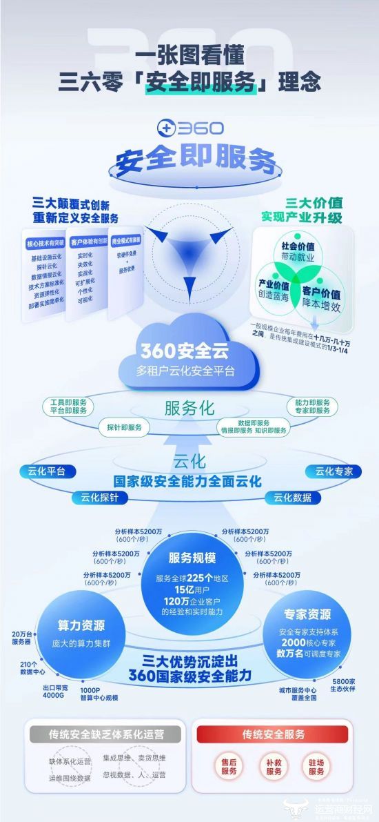 360集团创始人周表示,360安全云将复杂的数字安全工作优化为“协同处置”,软硬件免费,客户只需根据需求付费服务,呈现“省、快、轻、准、智”五大特点。在“云服务”模式下,企业网络安全投入低至原来的1/3-1/4,真正做到降本增效。