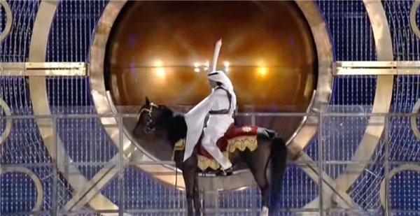 卡塔尔耐力赛马队队长阿勒萨尼骑着一匹黑马,冲向317米的陡坡,像一匹骑着燕子的马。