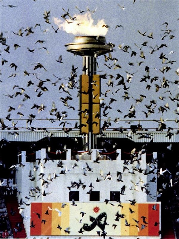 礼炮响起,数万只白鸽在风中绕着火炬塔飞翔的画面至今让人热血沸腾。