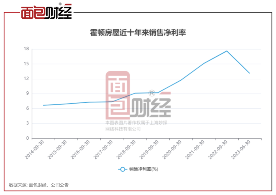 值得关注的是,受价格调整、激励措施、成本上涨等因素影响,公司住宅建设业务利润率有所下降。截至2023年6月30日的九个月,该公司房屋销售的毛利率为22.9%,去年同期为28.9%。公司销售净利率也出现了近年来的首次下滑。