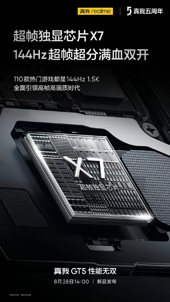 近年来,英雄联盟手游对年轻人有着深刻的洞察,在年轻人中有着巨大的影响力。我也一直坚持为用户普及144帧的电竞游戏体验,填补游戏画面的流畅性,打造超高帧手游体验的标杆。比如早在一年前,我就领先业界推出了首款超帧显示芯片X7,积累了更深刻的显示芯片调试经验。此次,I GT5再次搭载超帧显示芯片X7,引领行业实现144Hz+1.5K超帧满血长达110场,引领高帧高画质时代。超帧超分调的出色表现,让GT5成为首款逐点IRX认证的手机。