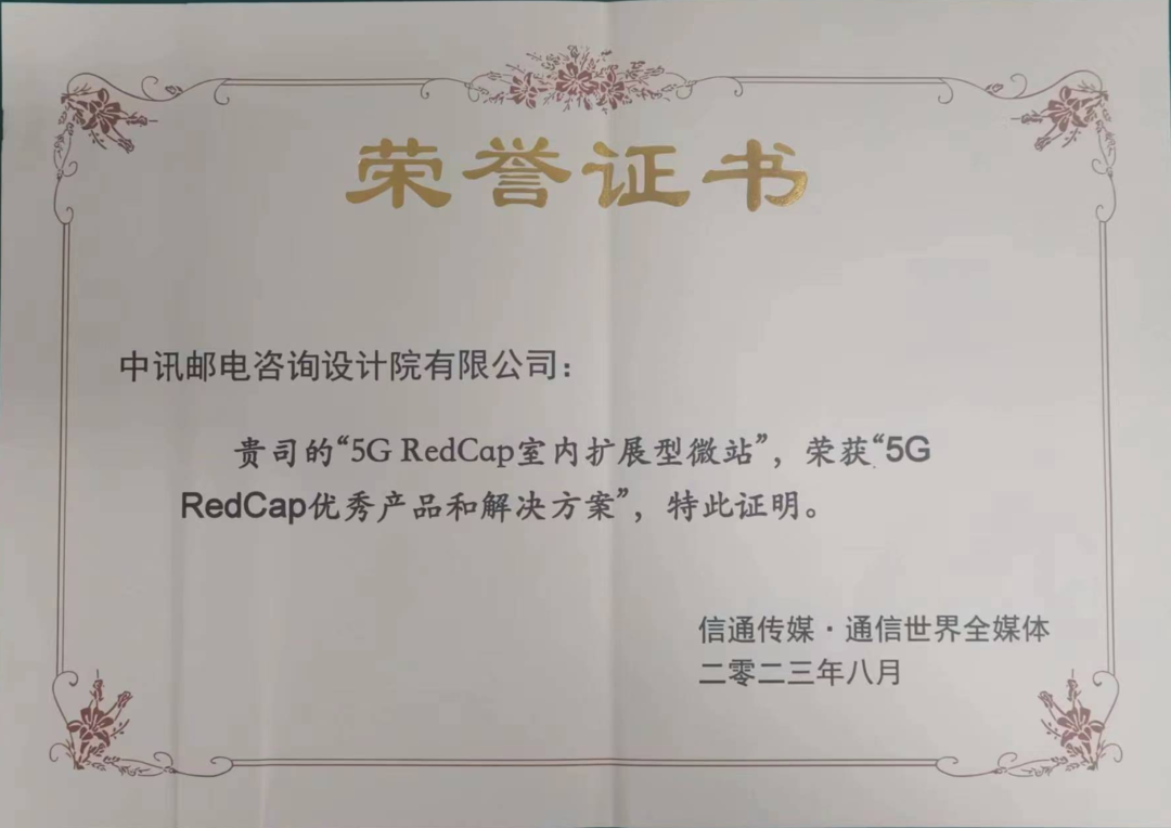8月24日,由通信界全媒体主办的“5G RedCap技术与物联网应用创新研讨会”在北京成功举办。会议邀请ICT研究所、运营商、设备制造商、芯片制造商、测试制造商等专家为RedCap产业发展建言献策。会上对在5G RedCap技术和物联网应用方面做出突出贡献的企业进行了表彰,评选出了十二个优秀产品和解决方案。中国联通中讯邮电咨询设计院有限公司5G RedCap室内扩展微站产品获此殊荣。