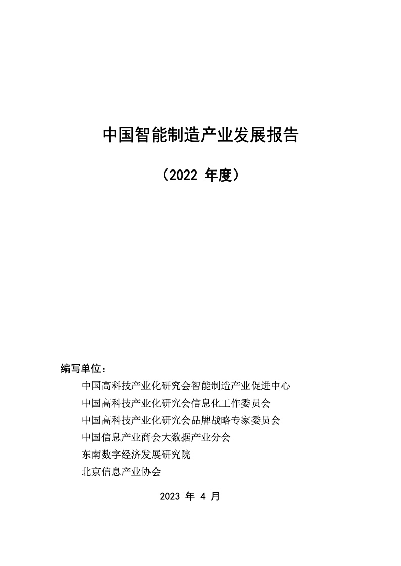 为了系统总结和回顾我国近年来在智能制造产业领域取得的成就,深入了解我国智能制造产业的现状和趋势,分析我国智能制造产业发展取得的成绩和存在的问题,中国高技术产业化研究会、智能制造产业促进中心、信息化工作委员会、品牌战略专家委员会、中国信息产业贸易协会大数据产业分会、东南数字经济发展研究院、 北京信息产业协会等相关机构组成研究团队,共同编写了《中国智能制造产业发展报告2022》。