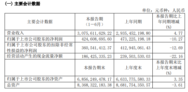 财报显示,华西生物今年上半年营收约30.76亿元,同比增长4.77%,净利润约4.25亿元,同比下降10.27%。扣非净利润约3.6亿元,同比下降12.69%。