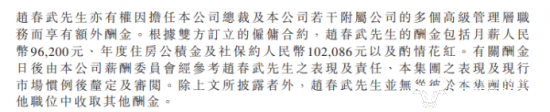 根据公司公告,赵春武有权因其担任公司总裁及公司多个子公司多名高管的职务享受额外报酬。根据双方签订的聘用合同,赵春武的报酬包括每月工资9.62万元,每年住房公积金和社保102086元,以及酌情发放的奖金。