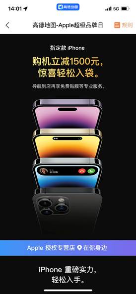 为了让用户享受到更多福利,高德地图还将在8月30日10:00-9月3日20: 00推出优惠活动。购买iPhone 14Promax可立减1500元,其他产品也可享受不同优惠。同时,购买iPhone 14系列产品,到店取手机,还可享受免费贴膜等专业服务。