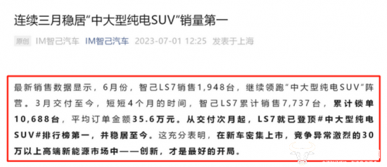 7月,同为SAIC旗下子公司的致志汽车表示,致志LS7自交付次月起,便荣登#中大型纯电动SUV#榜首,至今保持稳定。