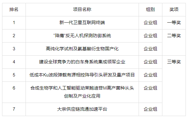 恭喜本次比赛的前七名项目组: