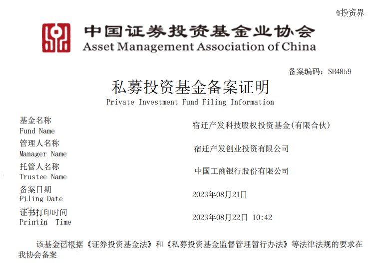 据投资界(ID: pedaily 2012)消息,8月21日,市联发集团旗下私募基金管理公司——宿迁市联发创业投资有限公司的首只基金——宿迁市联发科技股权投资基金(有限合伙)在中国资产管理协会顺利通过备案,标志着宿迁首只自主管理的市场化基金正式成立,开启了宿迁国资产业基金助力战略性新兴产业发展、支持企业转型升级、服务科技创新创业的新篇章。