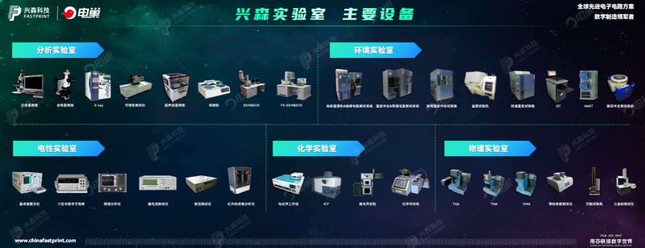 兴森科技的兴森实验室成立于2010年,拥有100多台测试检测设备,可以开展电路板测试分析、电子元器件测试、可靠性测试等工作。