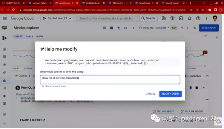 比如在云监控中,可以将自然语言提示自动转换成PromQL查询来分析时间序列指标,比如一段时间内的CPU利用率。Duet AI还可以在日志浏览器中提供复杂日志条目的直观解释,从而更容易分析原因,并提供如何修复错误报告中问题的建议。