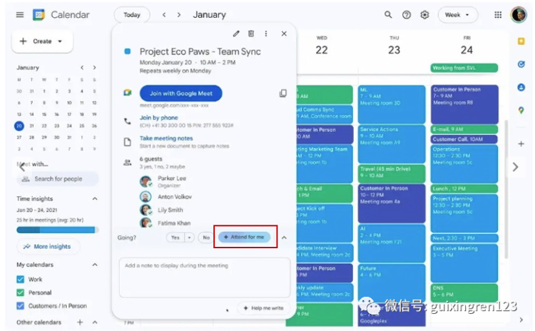 如果因为有事不能参加会议,在日历会议安排中,除了说“不”之外,还有一个新选项“AI替我参加会议”。你可以在会议中告诉Duet AI你想表达什么或者知道什么,AI助手会在会议过程中将这些信息传递给与会者,并记录下反馈和回答供你参考。
