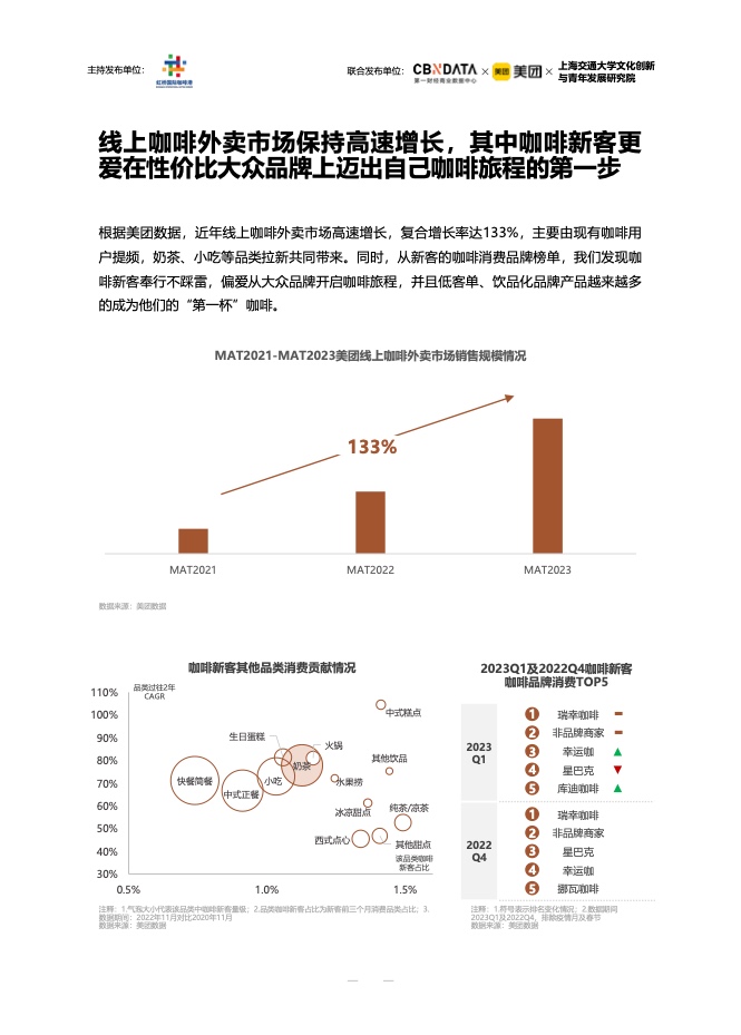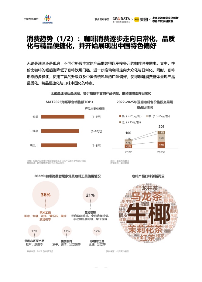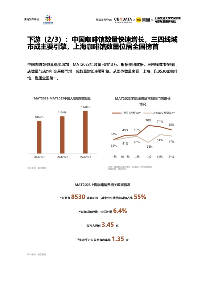 从现磨的咖啡店到连锁咖啡馆,不同类型的咖啡店各有优势,正逐渐占据人们的生活。尤其是连锁咖啡馆,随着门店数量的不断增加,成为消费者接触网络的主力军,进一步推动了整体咖啡市场的扩大。与此同时,社交媒体平台正在成为新一代消费者分享青春生活方式的核心阵地,咖啡相关内容的热度也在逐渐上升,不同城市的咖啡文化也在不断融合交流。