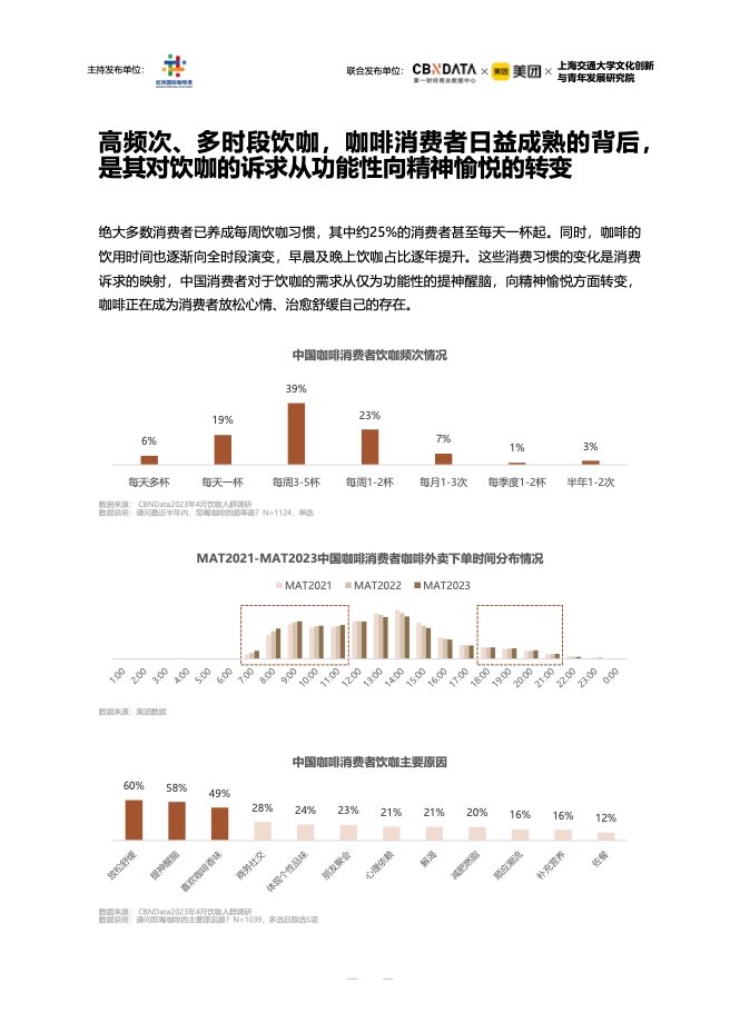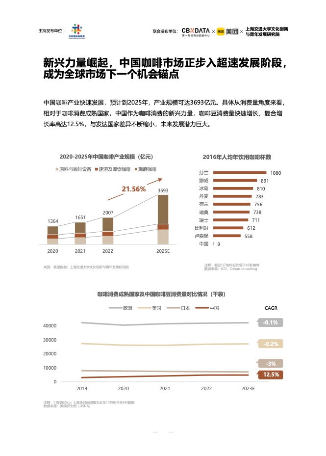 报告显示,近年来,中国咖啡市场呈现快速增长趋势,越来越多的消费者养成了每周喝咖啡的习惯。除了提神醒脑的功能诉求,越来越多的人选择喝咖啡是出于精神需求,希望在咖啡豆的余香中放松和治愈身心。咖啡正在成为日常生活方式。
