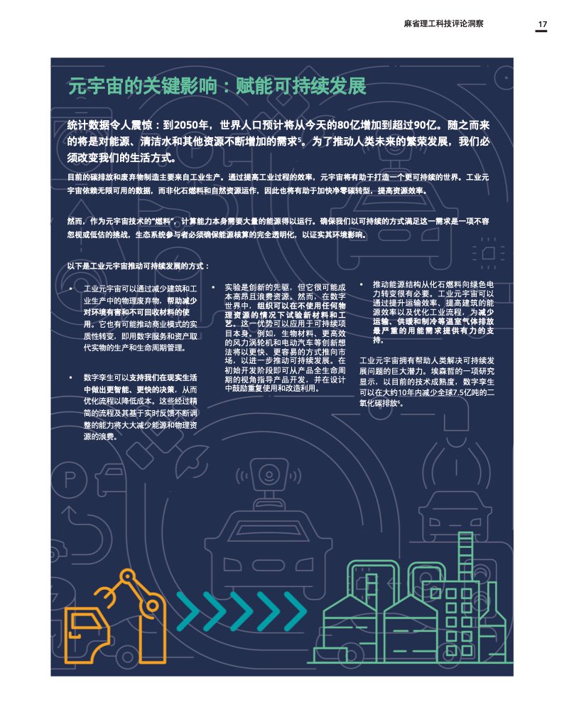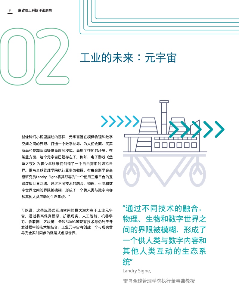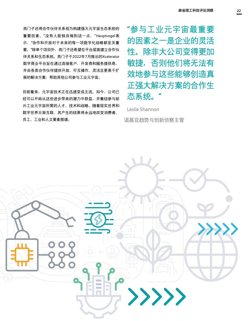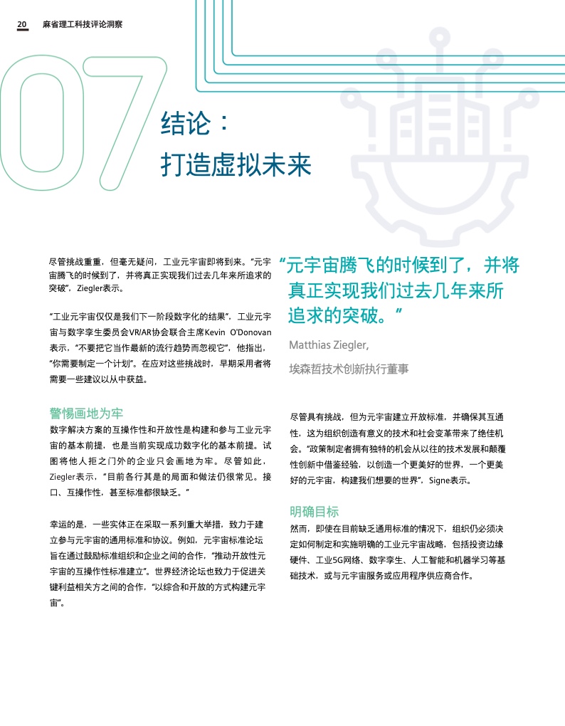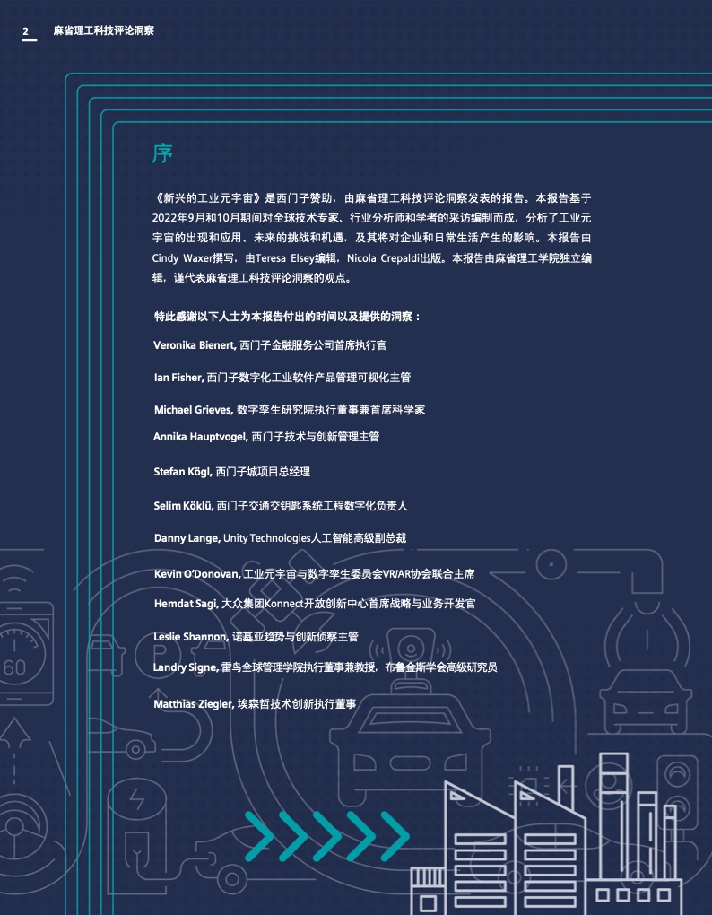 虽然这份报告没有提供如何成功构建工业超宇宙的所有答案,但它为企业和社会如何开始未来的旅程提供了宝贵的指导。这份报告为围绕工业超宇宙的进一步对话奠定了重要基础,因为我们仍处于这种颠覆性变革的初级阶段。因此,这份报告的出发点是启发如何共同塑造工业元宇宙未来的讨论。