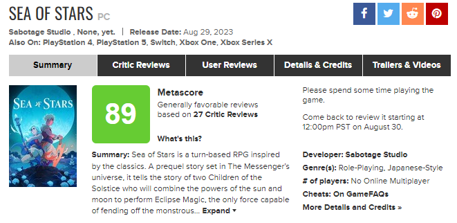 这一次的新作《星海》在上映前也是众望所归。目前该游戏在评测网站Metacritic上的评分为89,收录的27家媒体均给出了中上评价,其中IGN和Game Informer分别给出了8分和9分。