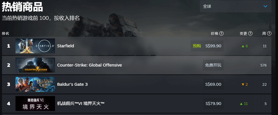 目前游戏以“预购”的方式登上Steam热卖榜榜首,比上周上升了6位,甚至超过了已经发布的《装甲核心6》和《博德之门3》。