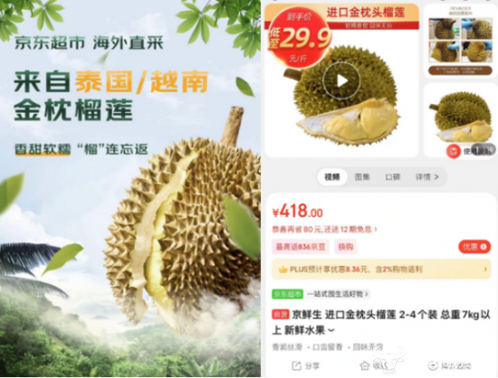 扩大和稳定货源。随着越南榴莲产区的成熟,JD.COM超市的专业采购商正在与越南产区洽谈直供合作。届时,市场上将出现越南金枕和泰国金枕的竞争。