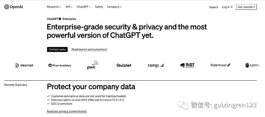 图片来自OpenAI官方博客。在数据安全方面,OpenAI提供了“静态数据的加密(AES-256)和传输中数据的加密(TLS 1.2+)”,并表示ChatGPT Enterprise通过了SOC 2 Type 1的合规性审计和认证。OpenAI还承诺,客户提示和所有其他数据不会用于模型训练,用户可以控制数据的保留时间,任何删除的对话都会在30天内从ChatGPT的系统中自动删除。在部署方面,ChatGPT企业版提供了全新的管理控制台,可以批量管理用户,包括单点登录、域验证和包含使用统计的dashboard,适合大规模、可扩展的部署。通过可共享的对话模板,企业版还支持员工使用ChatGPT构建内部工作流程。此外,OpenAI的API平台允许企业根据自己的需求创建完全定制的解决方案。