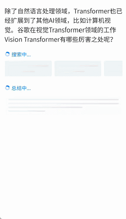 我们继续追问,在 NLP 领域里曝光率极高的 Transformer 早已经扩展到了计算机视觉领域。谷歌在视觉 Transformer 领域的工作 Vision Transformer 有哪些厉害的地方呢?天工 AI 搜索让我们了解到 ViT 相较于传统卷积和循环神经网络的优势、更出色的建模能力和更强的可解释性,以及为计算机视觉领域带来的积极影响。
